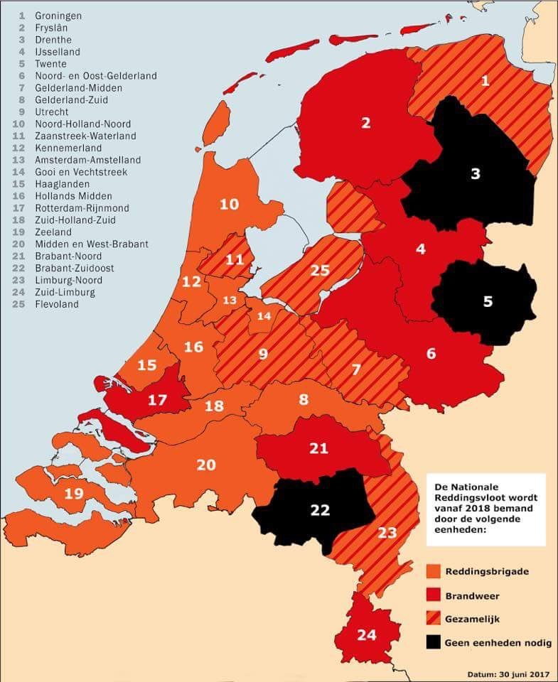 Er zijn in totaal 25 veiligheidsregio's in Nederland